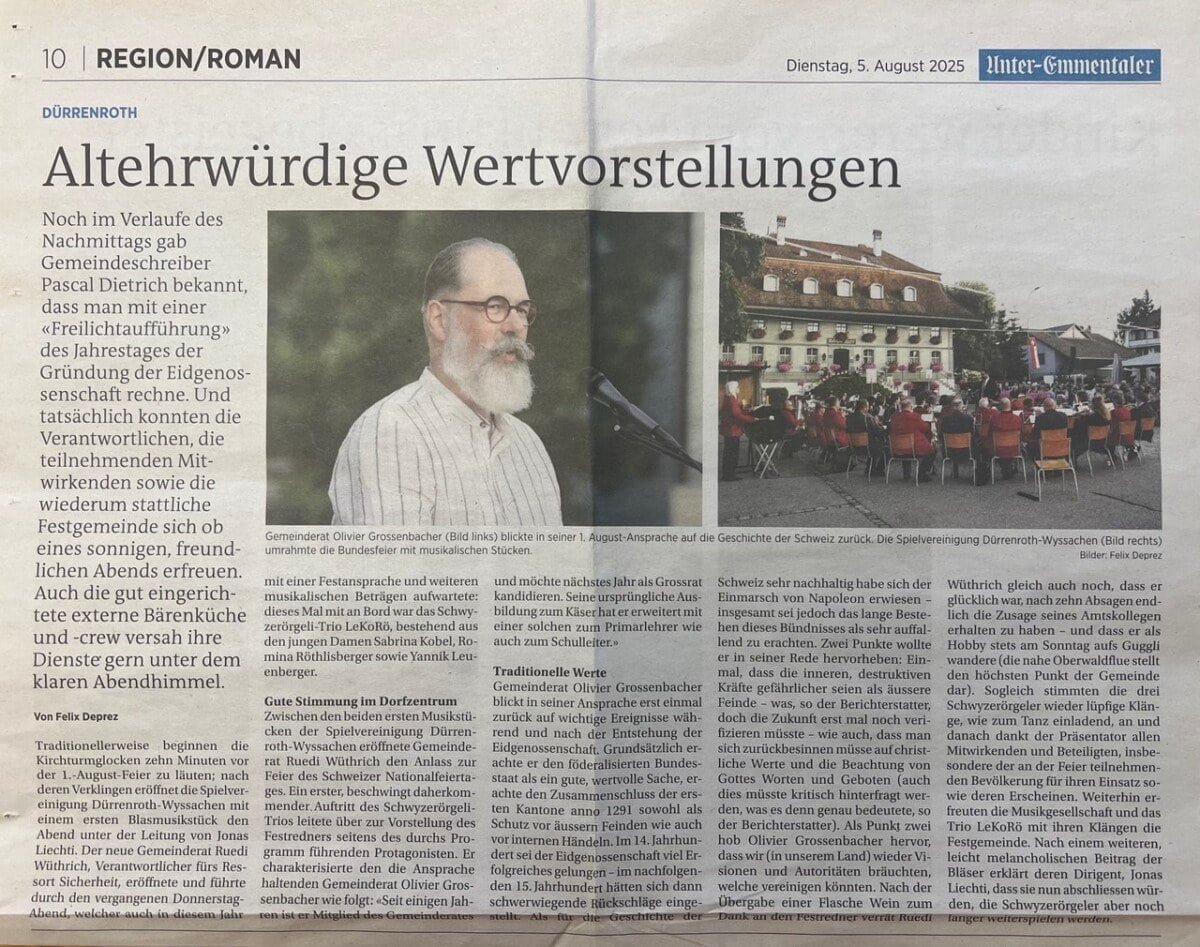 Meine Verwurzelung im Emmental, meine Verantwortung in Gemeindeaufgaben und mein Engagement in Vereinen prägen meinen Blick auf Politik: praxisnah, werteorientiert und finanzpolitisch bodenständig.